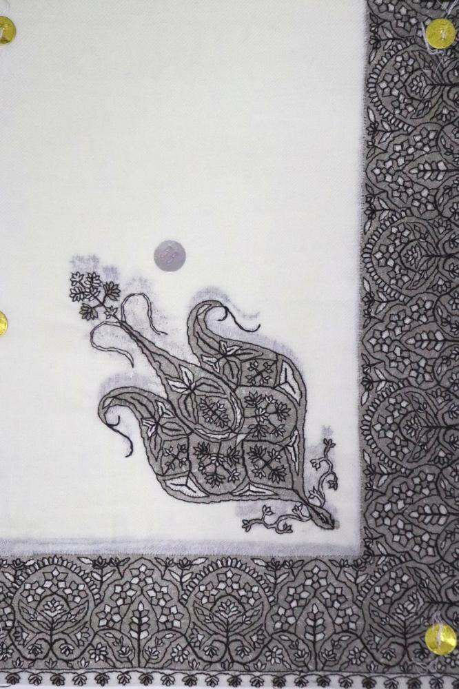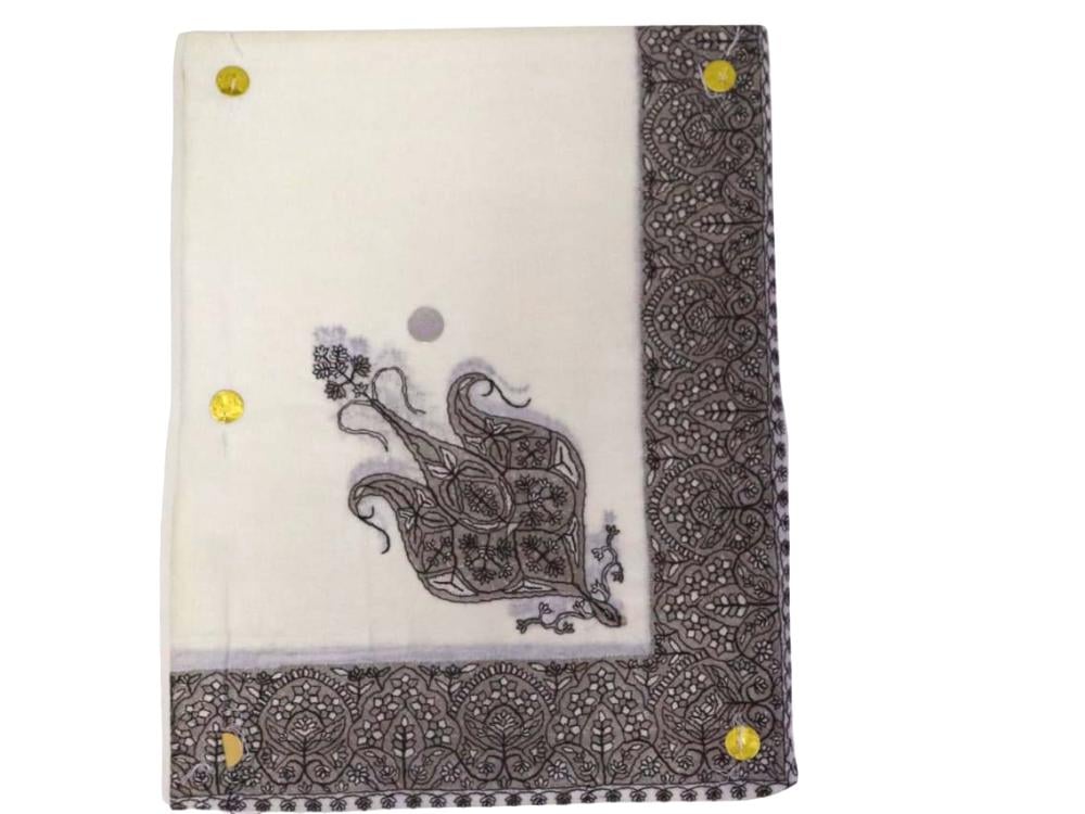 شال مطرز مصنع من الصوف مطرز بألوان حديثة وجذابة ميزته تدفئته العالية في الأجواء القارصة وخفة وزنه.