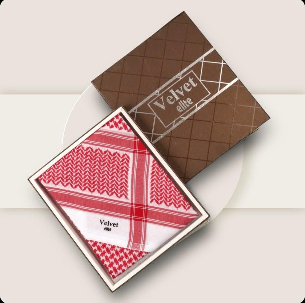 شماغ فلفت اليت دم الغزال المميز مصنوع من أفخر أنواع القطن العالمي؛ أطراف الشماغ متطابقة من كلا الجوانب ذات معايير اوربية.