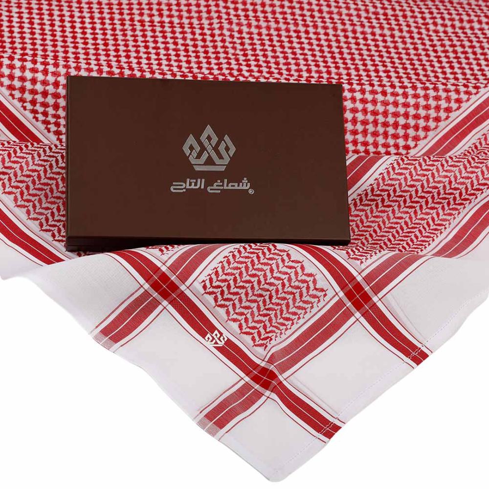 شماغ التاج الفضي الخيار الأول والأمثل لأجمل إطلالة يتمز مرتدي الشماغ بالجاذبية حيث أن ألوان الشماغ متناسقة بالإضافة الى تطابق أطرافها و ثبات الالوان. يتميز الشماغ بانة مصنوع من القطن المصري 100%. شماغ التاج رمز تراثنا نصنعه في بلادنا.